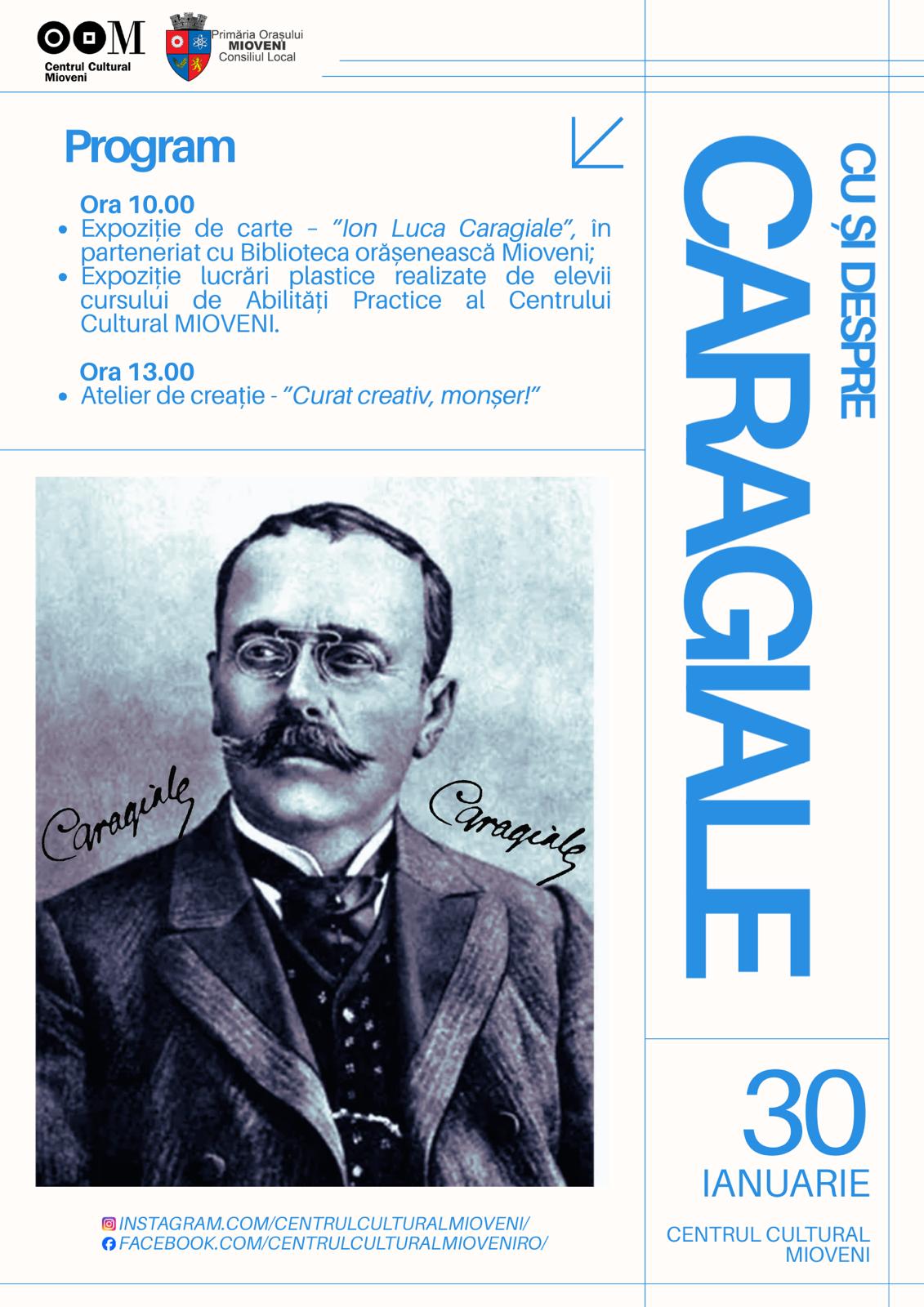 Centrul Cultural, Consiliul Local și Primăria Orașului Mioveni vă invită să celebrați una dintre cele mai importante personalități ale literaturii române – Ion Luca Caragiale – printr-un eveniment dedicat operei și spiritului său inconfundabil.